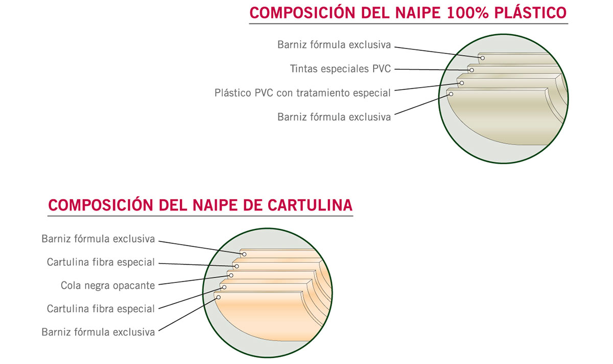 El sistema de corte por troquel carta a carta garantiza que todos los naipes tienen exactamente el mismo tamaño y que los bordes estén perfectamente redondeados.