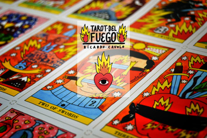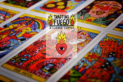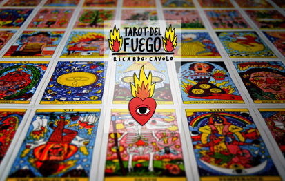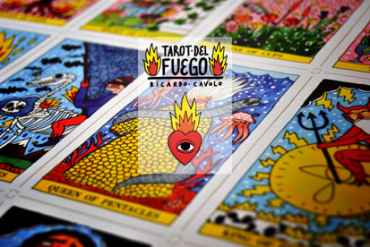 Ricardo Cavolo es un joven artista e ilustrador español con una proyección internacional increíble. Trabajador y prolífico, sus obras inundan murales, portadas de discos, posters, libros, ropa y cualquier superficie imaginable. Su arte es claro y distintivo, con colores vibrantes, personajes sonrosados y ojos de fuego omnipresentes. Sus ilustraciones realizadas a mano se han atrevido con uno de los tarots más clásicos de nuestro catálogo, el Tarot de Marsella, y lo han convertido en un tarot atrevido, moderno y muy personal, llamado Tarot del Fuego.